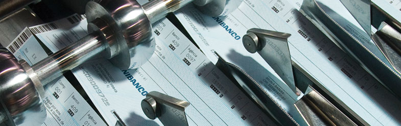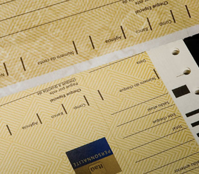 Talões de cheques, cheques contínuos, cheques de autoatendimento.